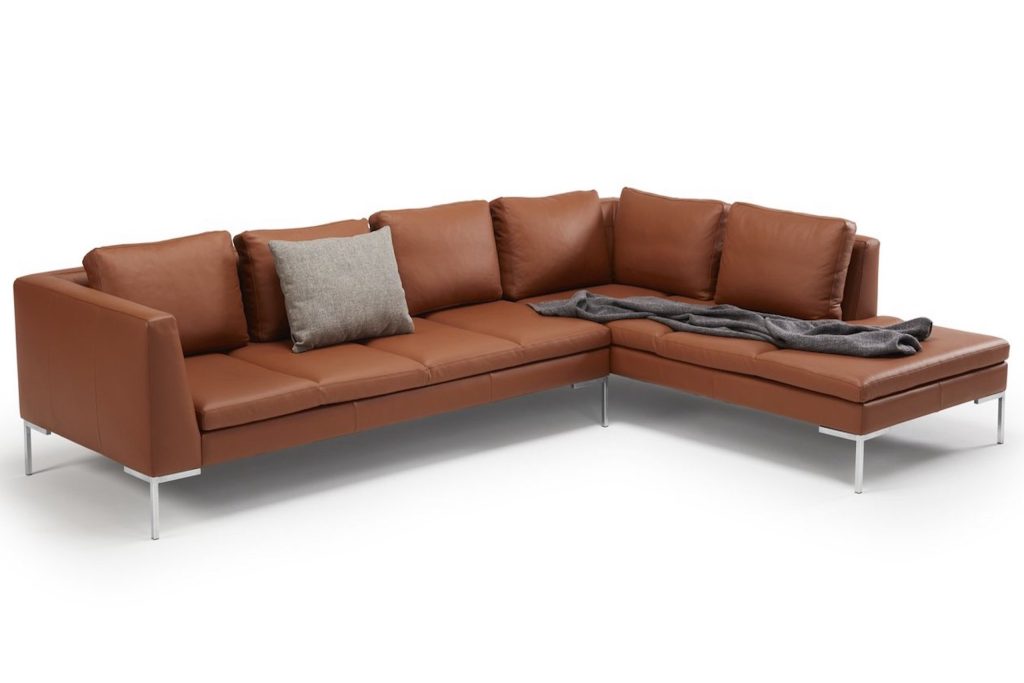L’entretien est simple : le tissu cognac est traité anti-taches, anti-poussière et résiste aux UV. Il peut être nettoyé ponctuellement à l’eau savonneuse ou avec des produits textiles spécifiques. En option, certaines versions du canapé proposent des éléments déhoussables pour faciliter l’entretien approfondi. Tous les éléments techniques sont dissimulés, ce qui garantit une apparence toujours propre et fluide, même après plusieurs années d’utilisation.