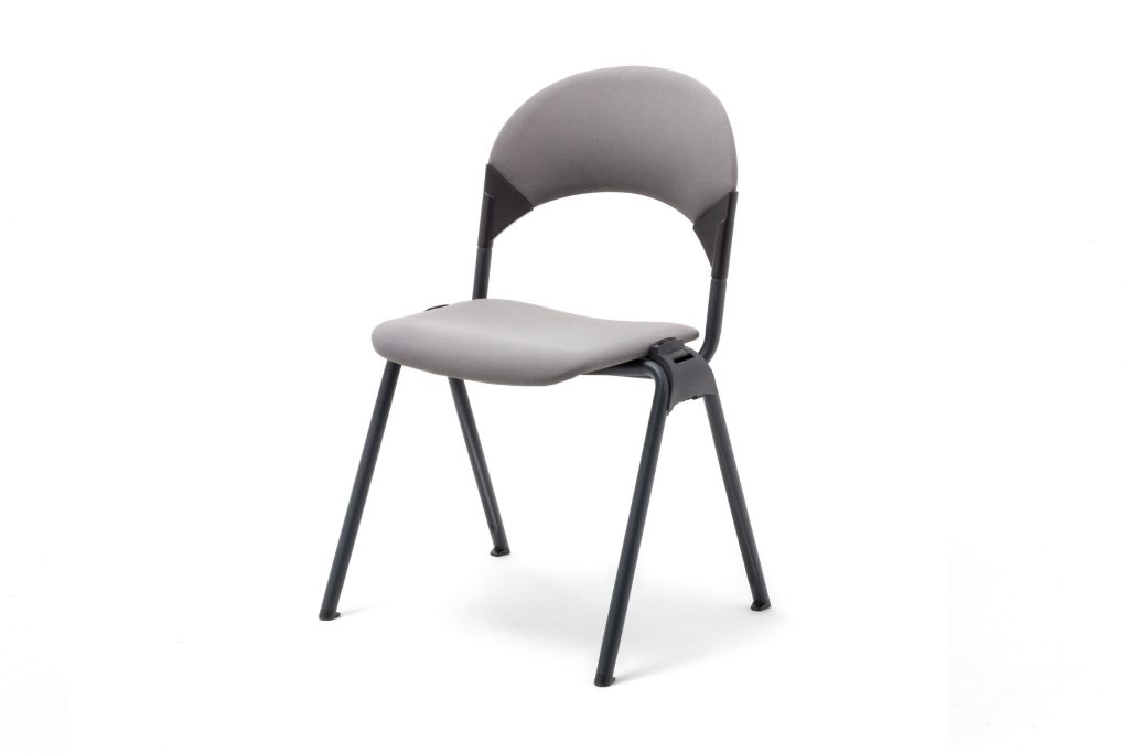 Visuellement, la chaise séduit par sa silhouette à la fois compacte et ouverte. Le piétement, en acier ou aluminium, reste discret tout en assurant une stabilité parfaite. Il existe en version 4 pieds fixes, base traîneau ou pied central pivotant, permettant d’adapter la chaise à chaque configuration de projet. Les lignes sont nettes, tendues, sans surépaisseur ni excès décoratif. Le contraste entre la structure métallique et la coque textile donne à l’ensemble un aspect technique mais chaleureux, rationnel mais accueillant. Cette dualité entre matière froide et matière douce, entre géométrie et rondeur, est au cœur du caractère de la chaise.